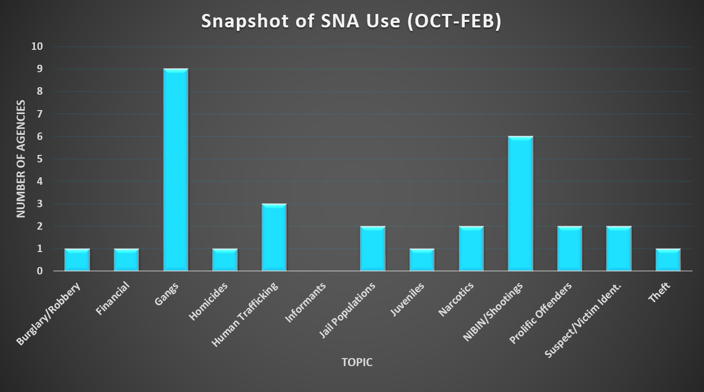 | 3 | 0900-1700 | Foundations for Institutionalizing SNA in LE | Today’s emphasis is on approaches to institutionalizing SNA as a normal analytic practice. Houston PD, Pasco County Sheriff, FBI-Chicago PD, Milwaukee Intelligence Fusion Center, Philadelphia PD/DVIC, and Sacramento County Sheriff will provide presentations about their efforts. Dr. Camber Warren (NPS) will present on social media and social networks. |